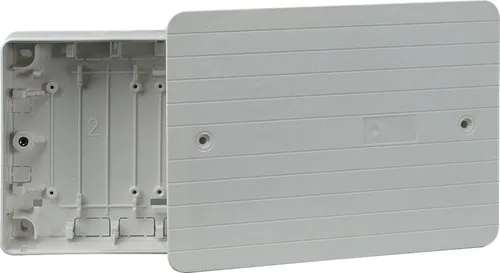Zusatzinformationen: | Gehäuse für Esserbuskoppler uP Farbe:grau/ähnlich RAL 7035. Unterputzgehäuse zum Einbau von zwei Platinen mit den Maßen 65 x 72 mm wie z.B. alle esserbus-Koppler oder der 92-poligen Verteilerplatine 381156. Gehäuse: Kunststoff, uP Gehäusefarbe: grau, RAL 7035 Maße (B x H x T): 189 x 131 x 47 mm Deckel: 207 x 149 mm