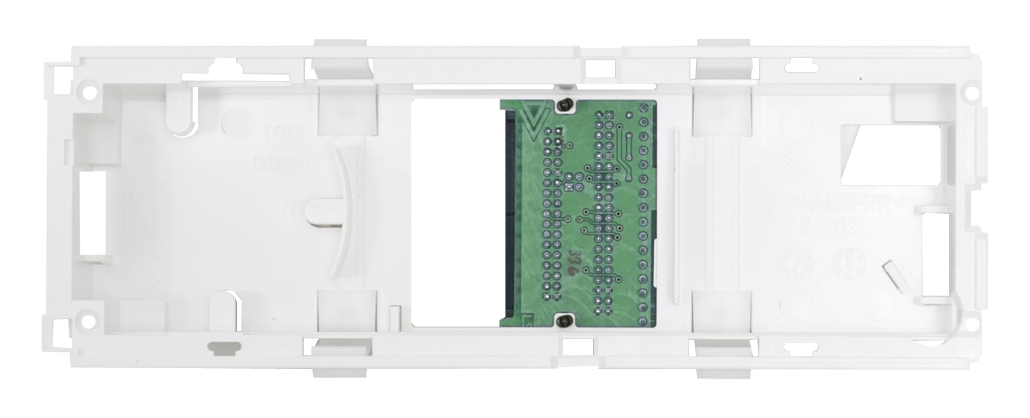 Zusatzinformationen: | Anschlussträger MVE für Bettenmodul. Anschlussträger MVE Bettenmodul zum Anschluss des Bettenbzw. Rufmoduls mit Steckklemmen für passive Zimmerkomponenten, die 24V-DC-Spannungsversorgung, sowie Kabelführung für LWL-Restlängen. Lieferumfang: Anschlussträger, Anschlussklemmen Farbe: weiß RAL 9016 Material: PC + ABS -FR