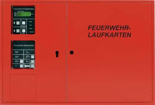 Zusatzinformationen: | FW-Info-& Bedienssystem Format A3. Feuerwehr-Informations- und Bediensystem mit redundantem FAT. Zweiflügliges Stahlblechgehäuse für Aufputz- und Unterputzmontage. Zentrale Türöffnung beider Türflügel. Vorbereitet für Halbzylindereinbau. Beinhaltet die Aufnahmefächer für max. 100 Feuerwehrlaufkarten DIN A3. Türöffnung über Halbzylinder linke Tür oder Riegel. Schloss nur rechte Tür.