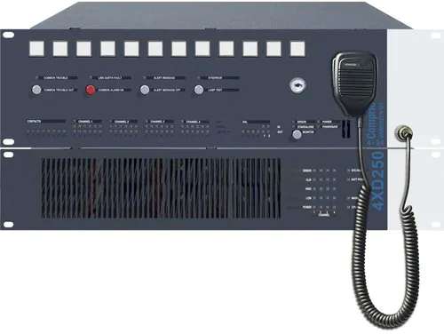 Zusatzinformationen: | Produktpaket Comprio 4-24 und Verstärker 4XD250B Zentrale Steuereinheit für Sprachalarmsystem VARIODYN D1, 24 Lautsprecherkreise gemäß EN54-16 und Verstärker 4XD250B. Zentrale Steuereinheit eines Sprachalarmsystems für kleine und mittlere Objekte. Die zentrale Steuereinheit bildet zusammen mit dem in dieser Position enthaltenen Vierkanalverstärker 4XD250B (mit integrierter Akkuladeeinrichtung) ein komplettes Sprachalarmierungssystem für Projekte wie Schulen, Läden, kleinere Hotels, usw. Für Sprachalarmsysteme gemäß DIN VDE 0833-4 und Elektroakustische Notfallwarnsysteme gemäß EN 60849. Alle Leistungsverstärker werden permanent überwacht. Im Falle eines fehlerhaften Leistungsverstärkers kann ein Havarieverstärker diesen dynamisch ersetzten. Die Umschaltung erfolgt automatisch über die zentrale Steuereinheit. Die Lautsprecherleitungen werden permanent auf Kurzschluss, Unterbrechung sowie Impedanzabweichung überwacht. Fehlerhafte Lautsprecherzonen werden rückwirkungsfrei getrennt. Die zentrale Steuereinheit enthält eine Stunde Speicherkapazität für vorgespeicherte Nachrichten, die für Alarmierungstexte und -signale, Fluchtalarm, Entwarnsignal und Aufmerksamkeitssignale genutzt werden können. Die Lautstärke jeder Quelle und jedes Verstärkerkanals kann geregelt werden. Weitere Filter, wie z.B. parametrischer Equalizer, Hoch- und Tiefpass sowie Delays, sind ebenfalls verfügbar. Alle Störungen werden innerhalb von wenigen Sekunden normenkonform erkannt, angezeigt und protokolliert. Für Spezialanwendungen wie z.B. Tunnel können Delays bis zu 9,9 Sek. programmiert werden. Die zentrale Steuereinheit ist mit 4 unabhängigen Verstärkerkanälen ausgestattet, um insgesamt 24 Lautsprecherzonen zu betreiben. Leistungsmerkmale